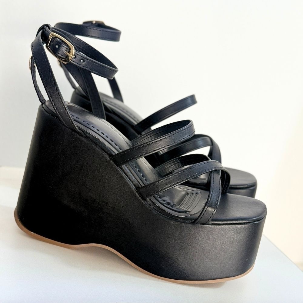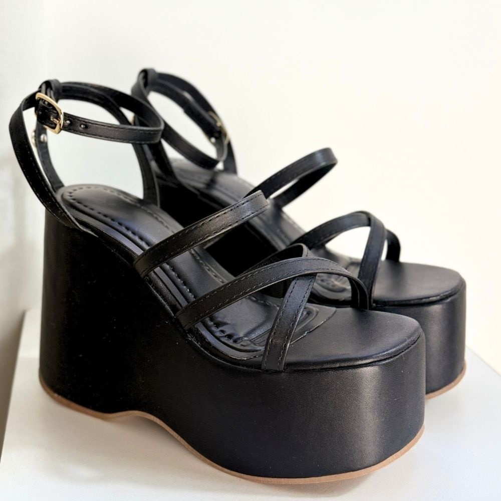 Topázia - Plataforma Preta em tiras com meia pata